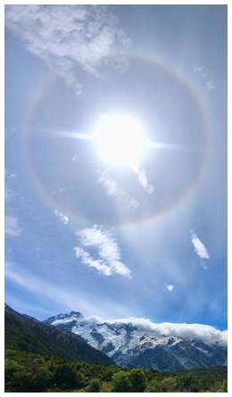 ![]() 'An 'ice halo' around the sun. Taken in Aoraki/Mt Cook Village, from the balcony of The Hermitage cafe, looking NW, with an iPhone on panorama mode at 14:37 on 28 January 2026' wrote Lisa. Photo of the Day - Thursday 29 January 2026